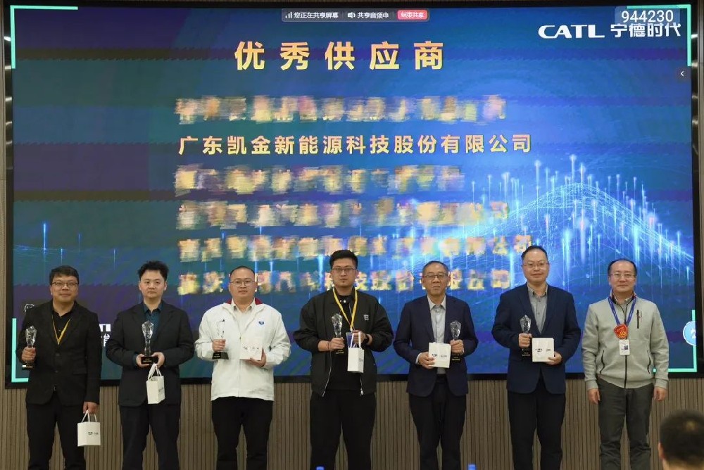 凱金新能源榮獲寧德時代2025年第一季度“供應商質量優(yōu)秀獎”