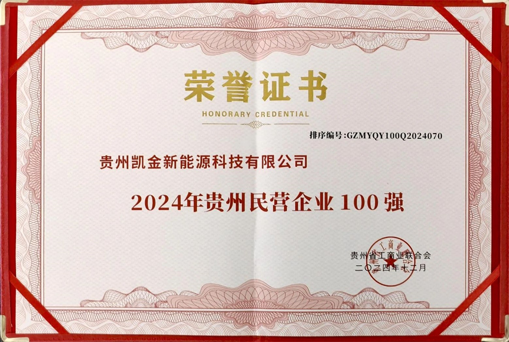 喜報!貴州凱金新能源榮登2024年貴州民營企業(yè)100強